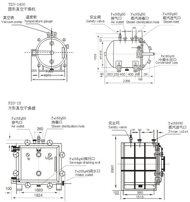 | 干燥箱內尺寸 | Φ 600×976 | Φ 800×1247 | Φ 1000×1527 | Φ 1400×2054 | 1500× 1060×1220 |