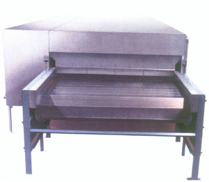用于脫水蔬菜,一般使用三臺設備串聯使用,形成初干段、中間段及終于段。在初干段中,由于物料含水量高,透氣性差,故采用小的鋪料厚度,較快的運行速度及 較高的干燥溫度。對物料溫度不允許超過60℃的料,初干段中,干燥氣體溫度可高達120℃以下,終干段內物料停留時間是初干段的3-6倍,鋪料厚度是初干 段的2-4倍。對于物料溫度不超過60℃的要求,可采用80℃左右的干燥氣體。采用多段組合地發揮帶式干燥的性能,且干燥更均勻。