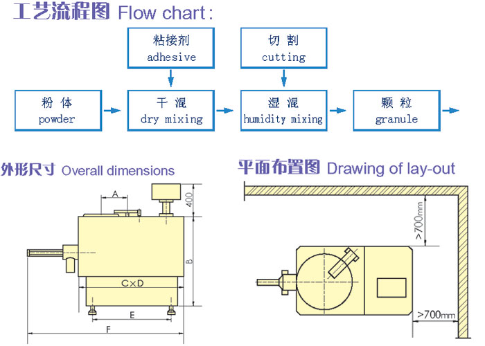 ■粉體物料與結(jié)合劑在圓筒形容器中由底部混合槳充分混合成濕潤軟材,然后由側(cè)置的高速粉碎槳切割成均勻的濕顆粒。