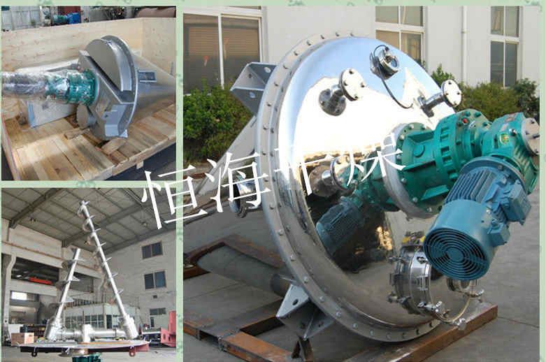 懸臂雙螺旋錐形混合機是集日本懸臂單螺旋和國內(nèi)“SLH”雙螺旋錐形混合機之優(yōu)點的一種新型高效混合設(shè)備。該機可廣泛應(yīng)用于化工、醫(yī)藥、農(nóng)藥、化肥、染料、冶金、礦山、食品、味精、飼料等行業(yè)的固-固(即粉體與粉體)混合、固-液(即粉體內(nèi)添加液體)混合。
